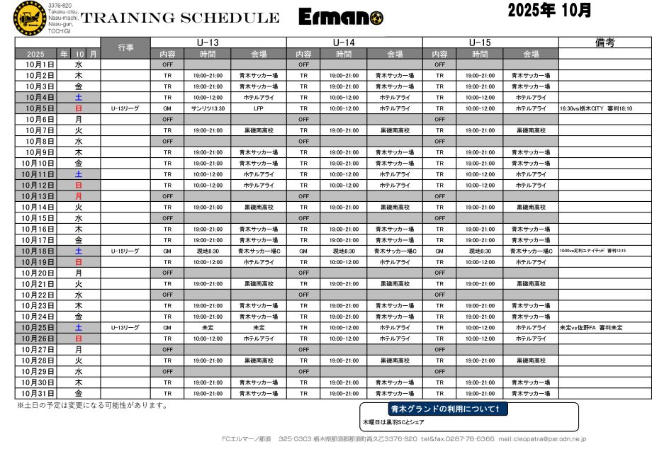 10月 1, 2025 by ermano Filed under スケジュール